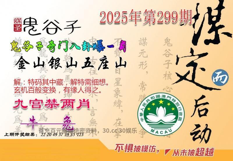 302期澳彩鬼谷子【龙马精神五福来开猴22中